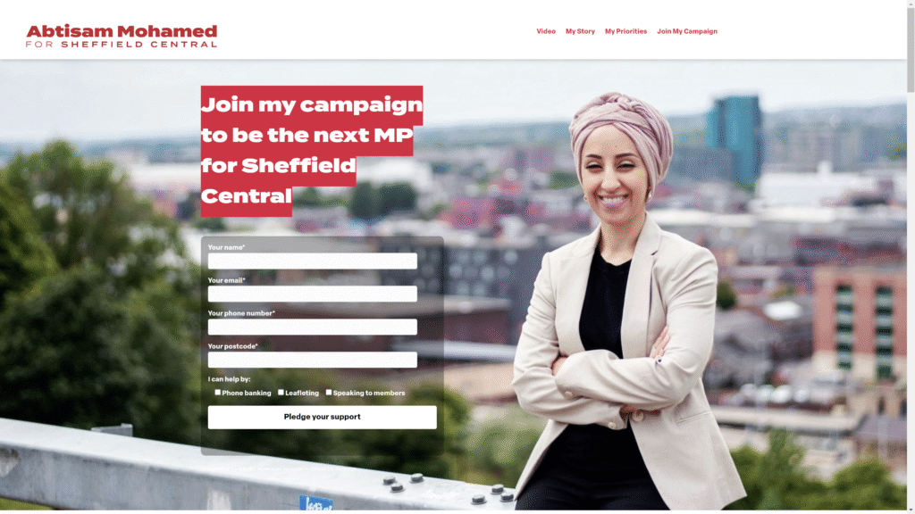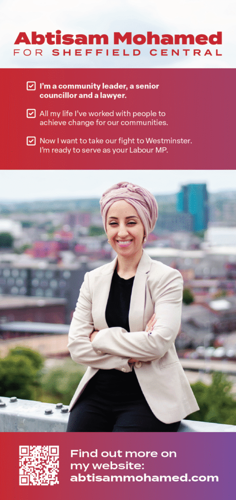 Through the latter half of 2022, Creative Director Robin Wilde was closely involved with Abtisam Mohamed’s successful campaign to be selected as the Labour candidate for Sheffield Central. Primarily this work involved developing branding, print materials and the campaign website, but he was also responsible for developing templates for the campaign. In a field of four shortlisted candidates, Abtisam was selected on the first round of voting in December 2022. In July 2024 she was elected as Labour MP for Sheffield Central with a majority of over 8,000, and now serves as the first British Yemeni MP.