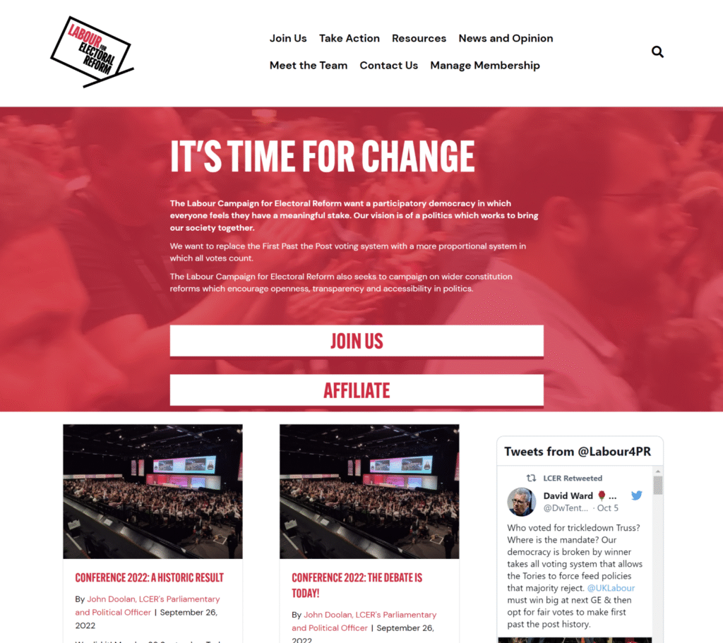 In advance of the 2021 Labour Party Conference, Creative Director Robin Wilde was asked to carry out a rebrand and build a new website for the Labour Campaign for Electoral Reform. Changing the name to Labour for Electoral Reform, he developed a new set of branding based on the imagery of a ballot box, and successfully rolled out the new site and brand (along with accompanying merchandise) in September 2021.