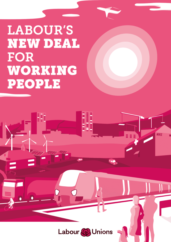 Over Summer 2022, Creative Director Robin Wilde worked with Labour Unions, the liaison office between the Labour Party and its affiliated trade unions, on their new report, A New Deal For Working People, including developing a new sub-brand for the work, illustrating a front page and producing supporting materials such as postcards and badges ahead of the report’s launch at the 2022 Labour Party Conference.